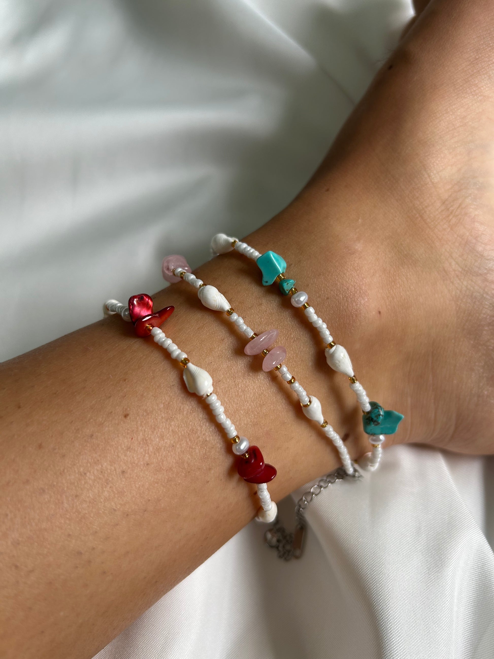 Cavigliera realizzata in perline e acciaio inox