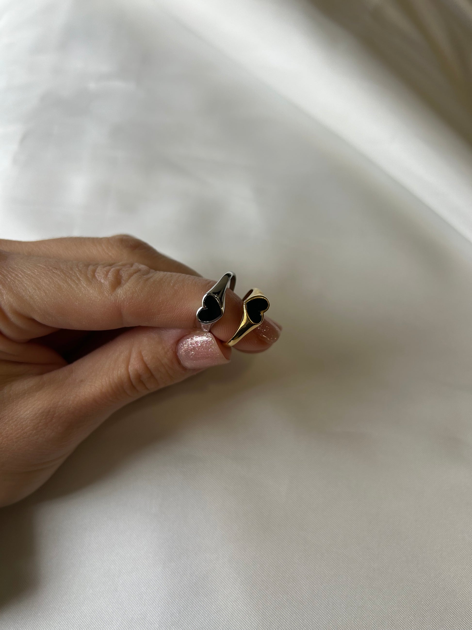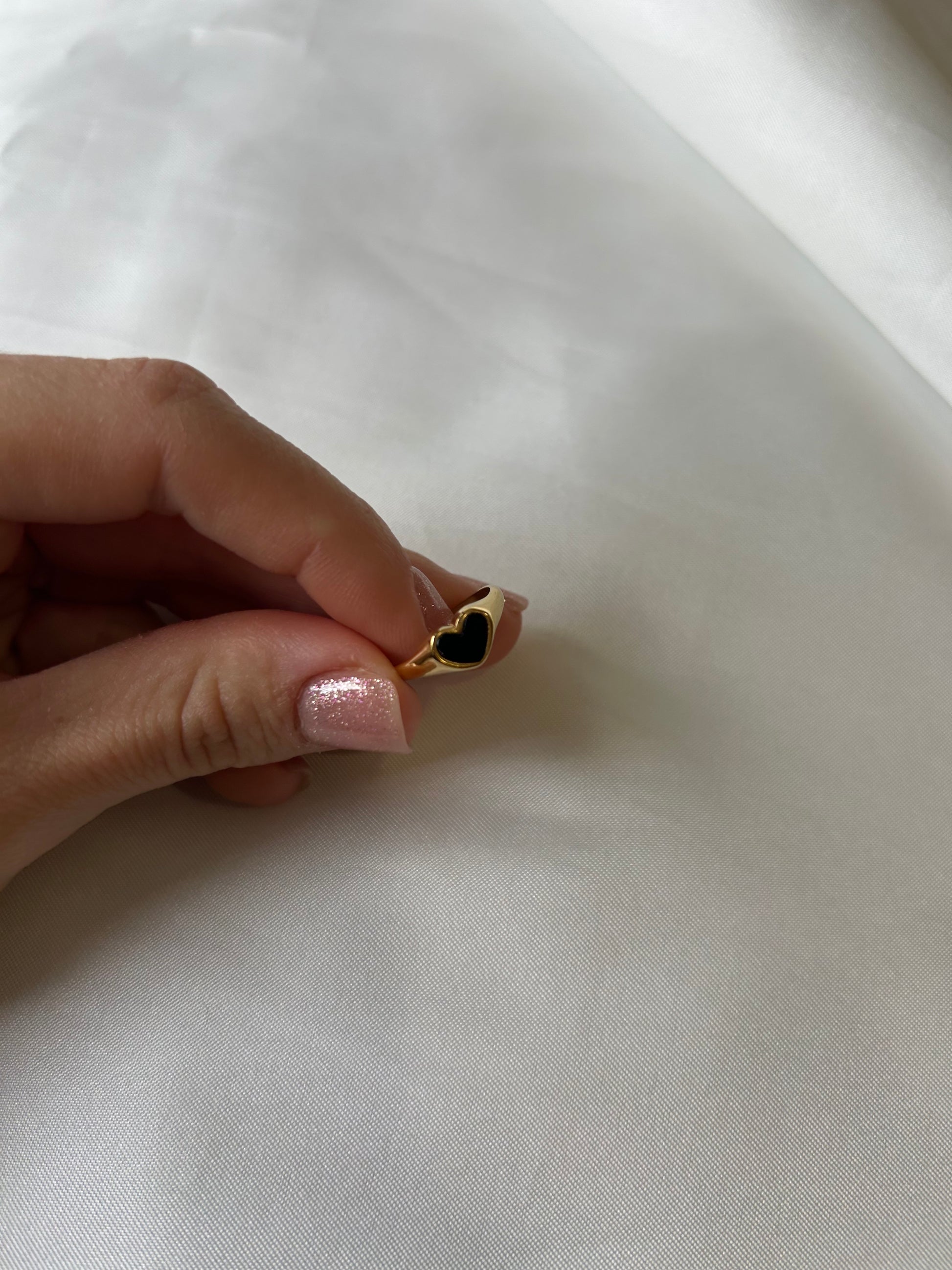 Anello da mignolo regolabile con cuore nero